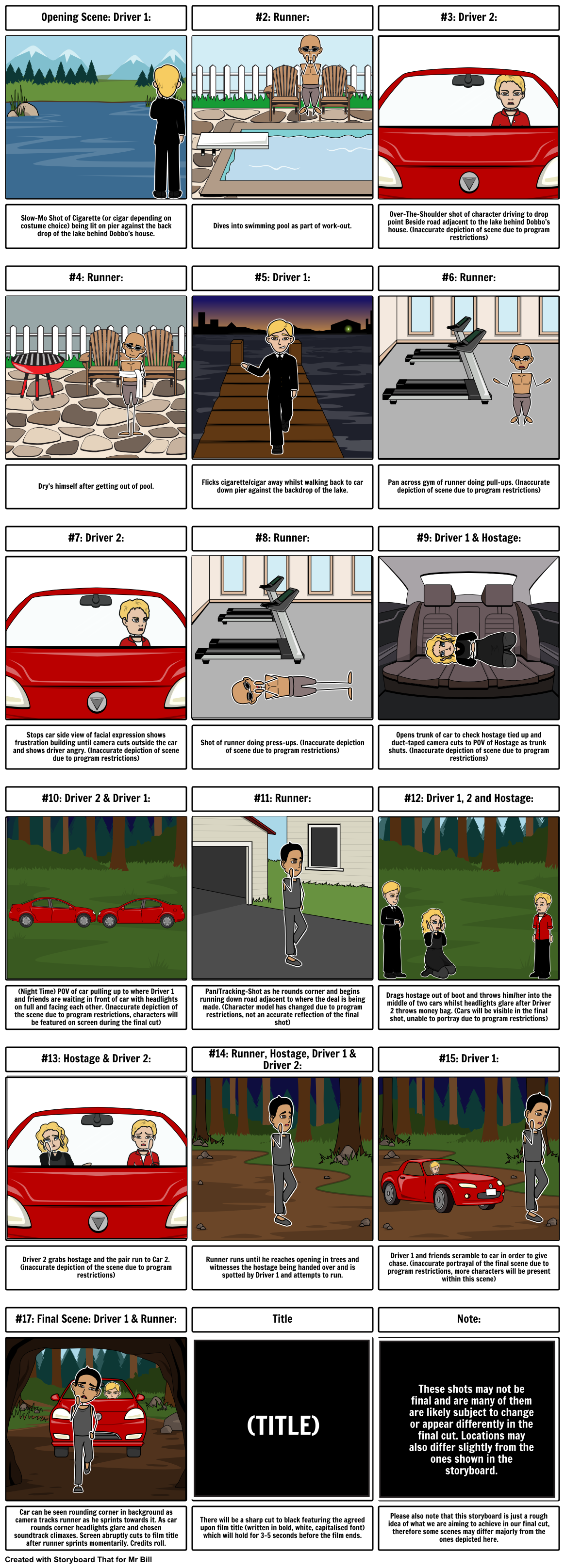 Costume for Bill and Ben's roles. I chose to dress Bill and Ben in smart, ambiguous attire. I felt all black was perfect for this as it will make it clear to the audience that they are playing the role of 'bad guys' due to the connotations attatched to the colour. The accessories show that the characters are money-motivated and the use of sunglasses show they are concerned with hiding their appearances. This outfit was inspired by Michael Madsen's role in 'Resovoir Dogs'.